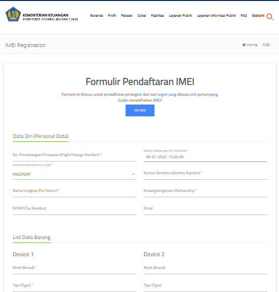Baca juga : Cara Mengisi Formulir Pendaftaran IMEI pada Web Bea Cukai dan Aplikasi Mobile Bea Cukai